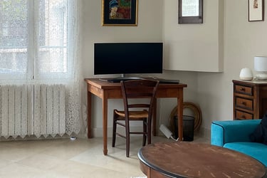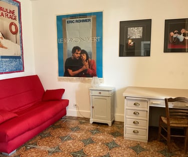 ein Schlaf-/Arbeitszimmer mit einer Schlafcouch, die in ein Doppelbett umgewandelt werden kann (140 x 200 cm),