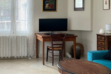 Im Wohnzimmer eingerichteter Remote-Arbeitsbereich :