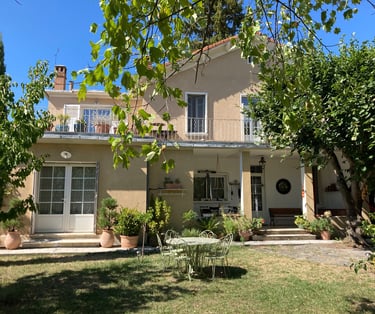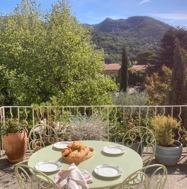 die Terrasse im ersten Stock mit Blick auf den Mont Saint Jaume