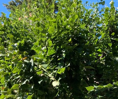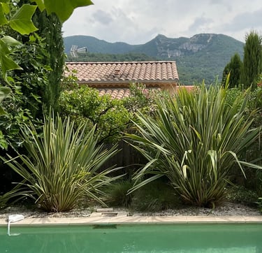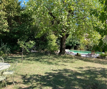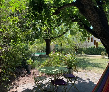 Eine alter Lindenbaum, ein großer Virginia-Tulpenbaum, drei Zypressen, ein alter Feigenbaum, zwei Olivenbäume, ein Indianerflieder, ein Dutzend Oleander, ein kleiner Apfelbaum, ein Kirschbaum, zwei kleine Aprikosenbäume, ein kleiner Mandelbaum , eine alte Eibe, zwei kleine japanische Ahornbäume, zwei junge Flieder, Agapanthus, neuseeländischer Flachs (Phormium), mehrere Rosen, Lavendel, ein Lorbeerblättriger Schneeball und ein Lorbeer, ein gelber Jasmin, Spindelbäume usw. und viele andere Pflanzen und Blumen in Töpfen oder im Boden.